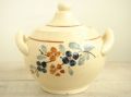 手書きの花柄のフランスのアンティークシュガーポットです。